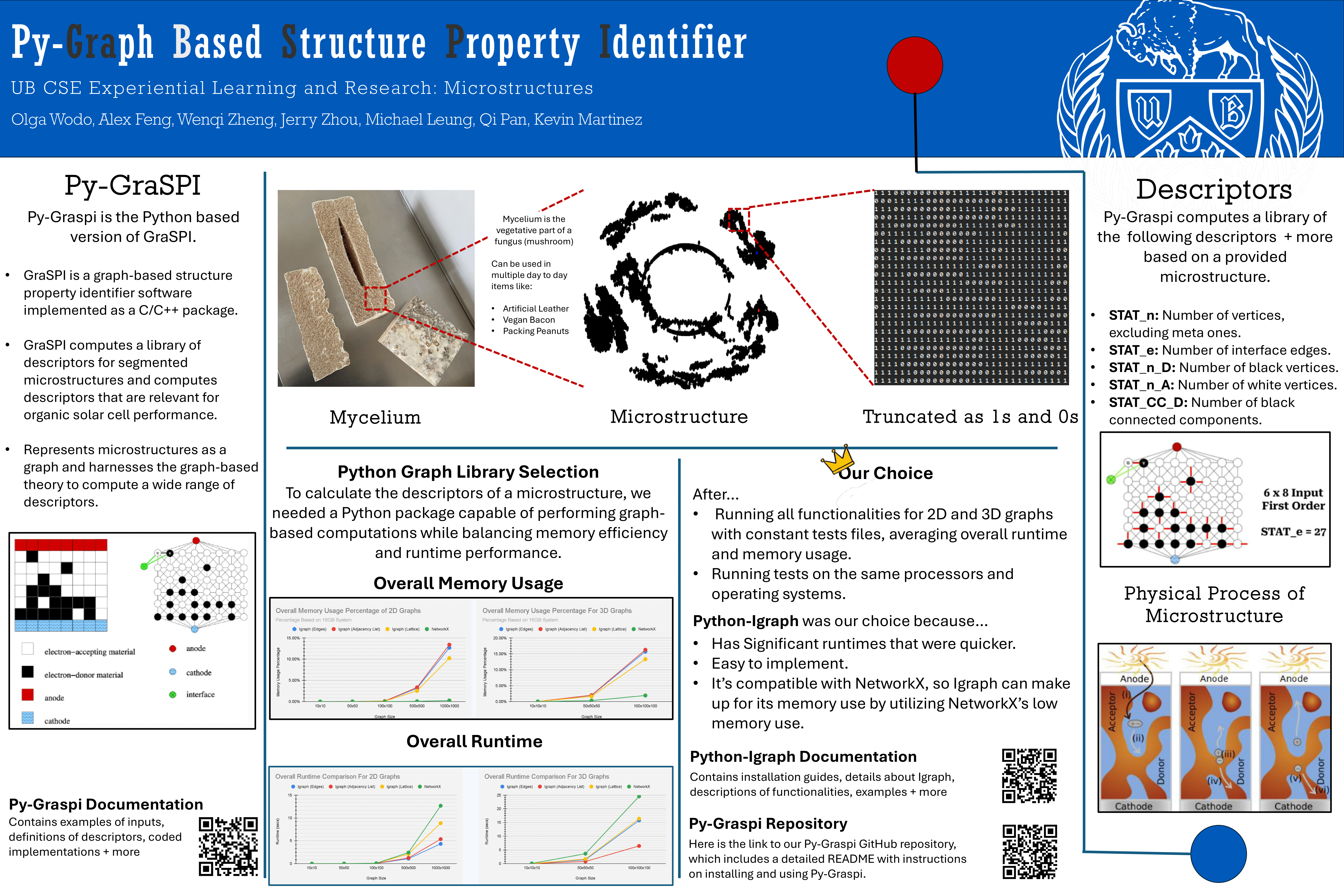 GraSPI is a research project led by Olga Wodo, a researcher in Informatics and high-performance computing for materials design and manufacturing. It’s a software tool that computes descriptors for segmented microstructures and organic solar cells, thereby enhancing machine learning applications in material science. Developed using Python, the software transitioned from C++/C, incorporating advanced graph-based libraries for optimal performance and compatibility. This project was executed using agile methodologies by a collaborative team of five, culminating in a second-place win at the University at Buffalo's 13th Bi-annual Computer Science and Engineering Demo Day. The innovative approach and teamwork demonstrated in GraSPI not only facilitated precise computational analysis but also showcased the potential to drive forward advancements in organic material research.